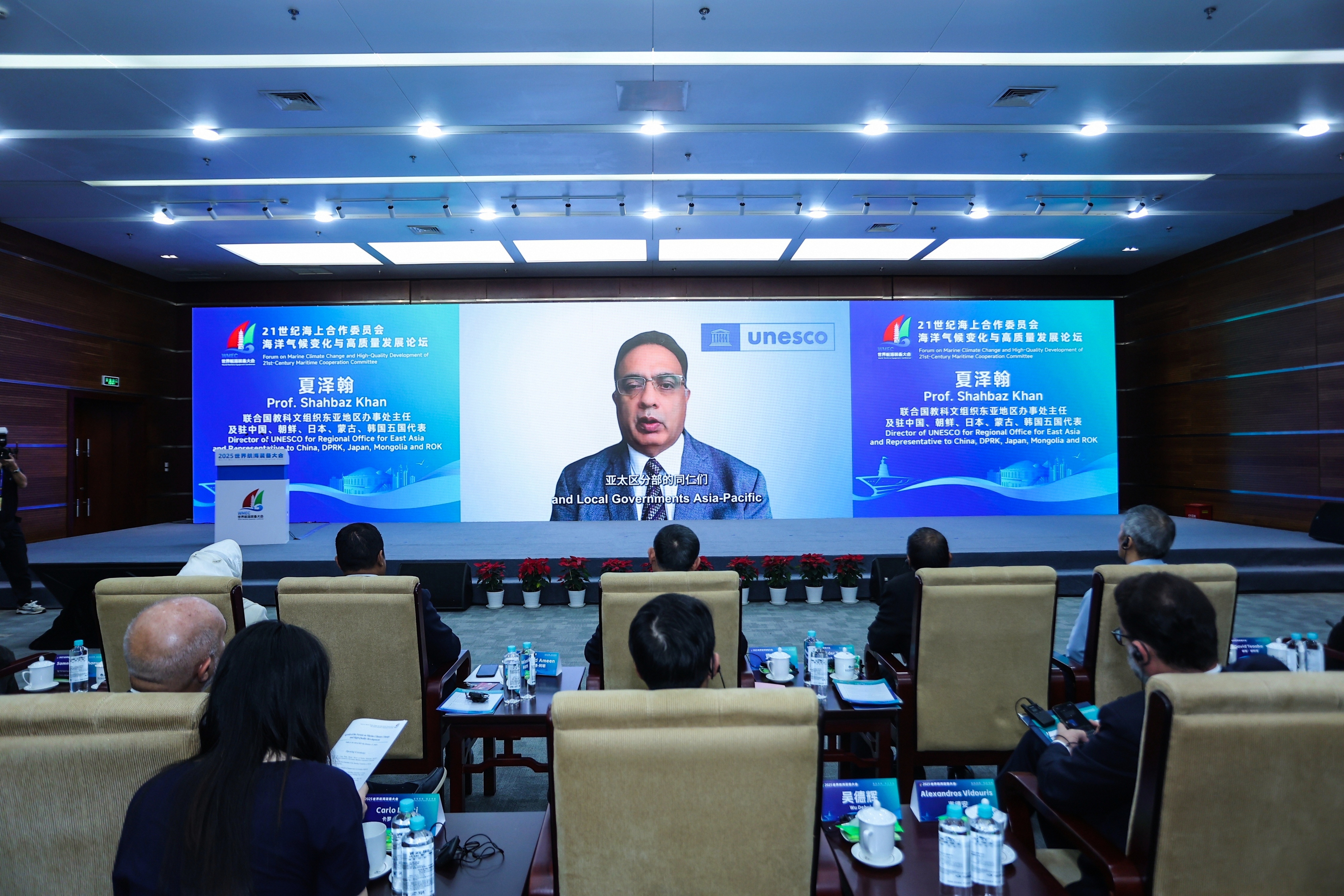 Prof. Shahbaz Khan, Director of UNESCO for Regional Office for East Asia and Representative to China, DPRK, Japan, Mongolia and ROK delivered a speech via video