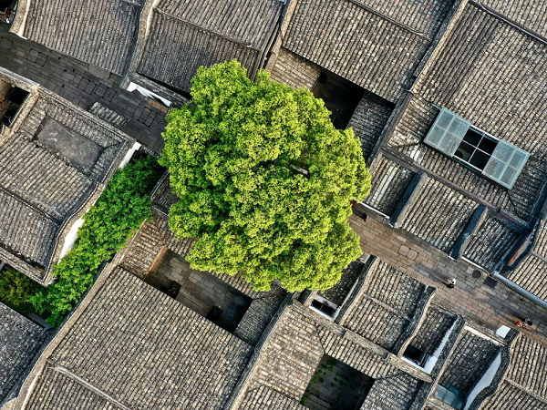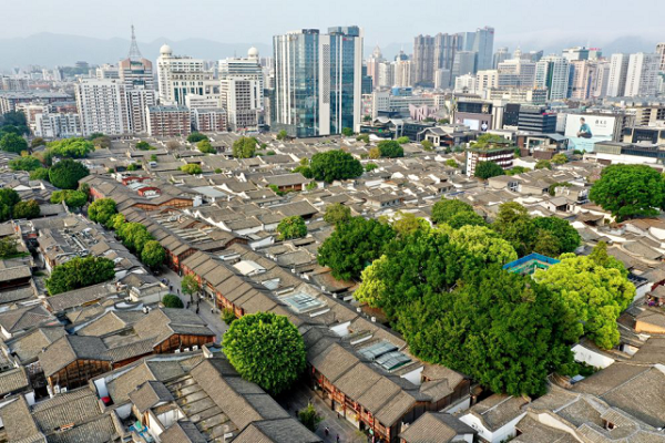 Ancient buildings and trees in the Three Lanes and Seven Alleys (Xinhua/Jiang Kehong)