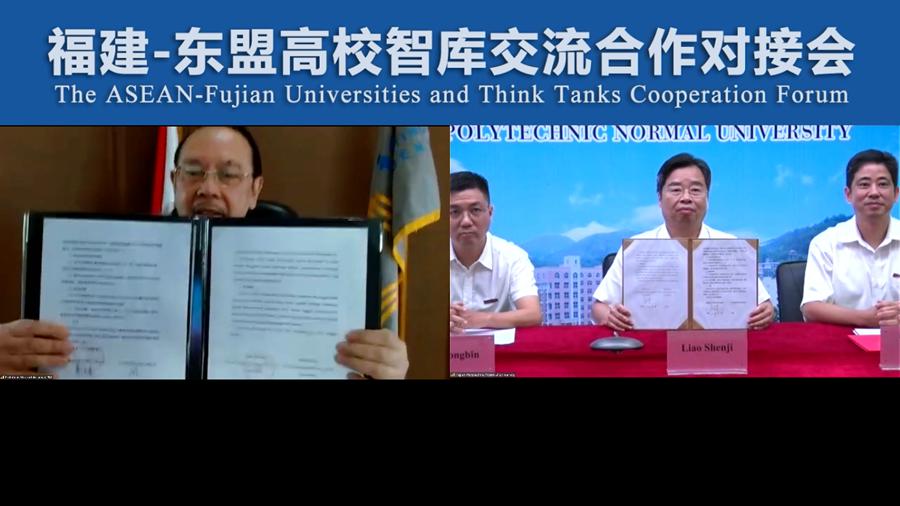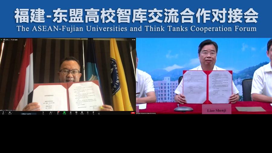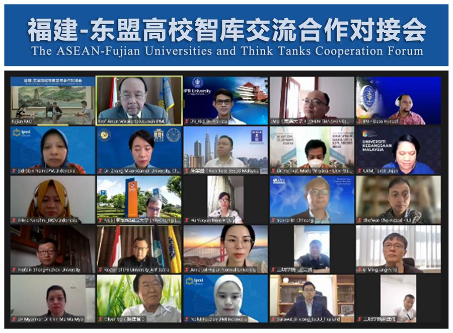 The ASEAN-Fujian Universities and Think Tanks Cooperation Forum was held via video links on September 28, 2021. Co-hosted by FAO and the Education Department of Fujian Province, the Forum brought together over 30 delegates from across Fujian and AESEAN countries including Cambodia, Indonesia, Malaysia, Myanmar, Philippines, Singapore and Thailand. Their engaging discussions focused on marking the 30th anniversary of China-ASEAN Dialogue Relations, looking ahead to stronger China-ASEAN communication and cooperation in post-COVID era, boosting high-quality Belt and Road cooperation, ramping up joint international COVID response and restoring order in economy and society.