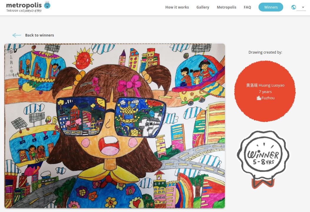 The winners of the “Metropolis Through Children’s Eyes” contest organized by Metropolis were also announced at the closing ceremony. Over 140 children from Fuzhou had actively participated in the contest. The drawing created by Huang Luoyao, a student of Fuzhou Qunzhonglu Primary School, stood out from hundreds of entries, and Huang was awarded as the only winner of the 5 - 8 age group.