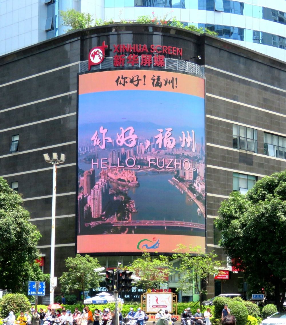The promotion video, “Hello, Fuzhou”, is broadcast on the outdoor screen in Fuzhou.
