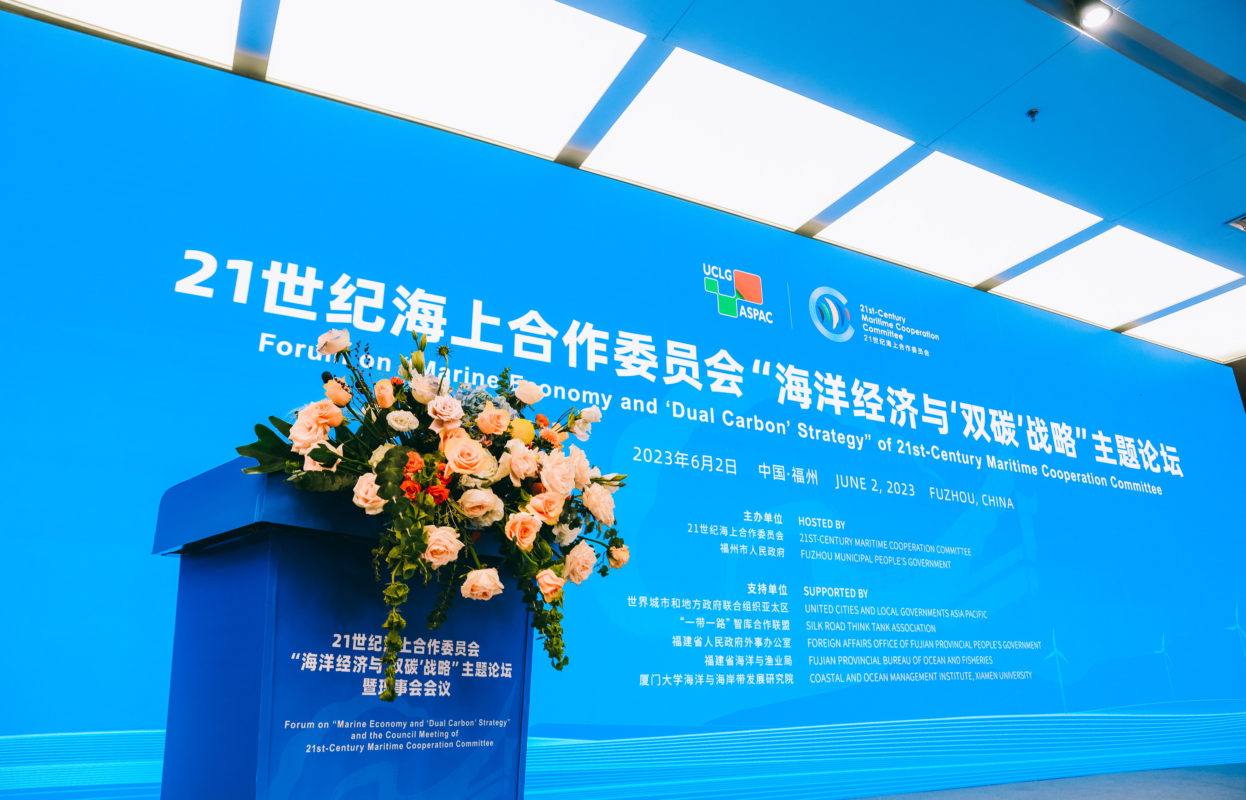 The event was hosted by 21st-Century Maritime Cooperation Committee, Fuzhou Municipal People’s Government, and supported by United Cities and Local Governments Asia-Pacific, Silk Road Think Tank Association, Foreign Affairs Office of Fujian Provincial People’s Government, Fujian Provincial Bureau of Ocean and Fisheries, and Costal and Ocean Management Institute, Xiamen University.