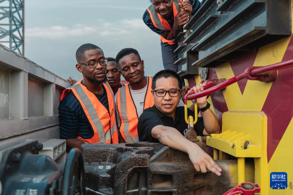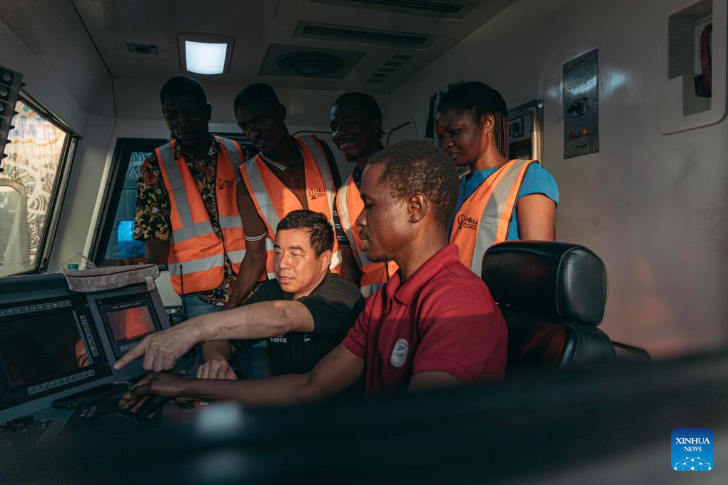 A Chinese employee of the Lagos-Ibadan Railway instructs local trainees in Lagos, Nigeria, on Feb. 27, 2024. (Photo by Zhuang Yanhui/Xinhua)